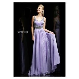 NEW with tags SHERRI HILL Style 3896 Lavender Purple Rhinestone Embellished Chiffon Maxi Gown Prom Dress Pageant Dress