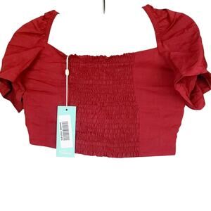 NWT | SHORE Red Crop Blouse Puff Sleeve Women sz. M Made in USA | MSRP $98