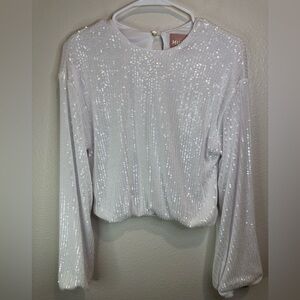 NWT SHOW ME YOUR MUMU Good Times Top in White Sequins Size S