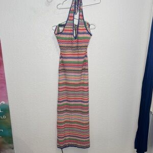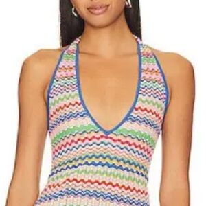 NWT SHOW ME YOUR MUMU Kate Halter Maxi Dress Rainbow Knit Large Revolve