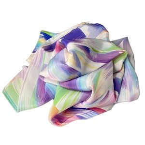 One of a kind pattern 100% Crepe de Chine silk in attractive multicolor brushstrokes, square approximately 20x20 inch (50.8x50.8 cm.)