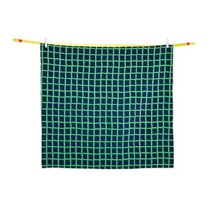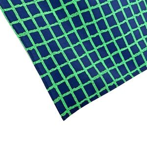 One of a kind pattern 100% Crepe de Chine heavier feel silk in green + navy grid graphic, square approximately 20x20 inch (50.8x50.8 cm.)