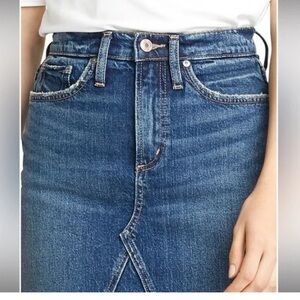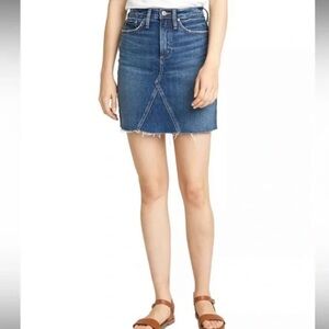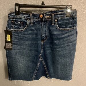 Perfect condition NWT Indigo blue (dark wash) Raw hem with frays (cute style) Mini skirt High Rise Has some stretch to it Cool, causal vibes Unlined 5 style pocketing with zipper and button closure Has belt loops
