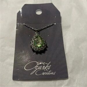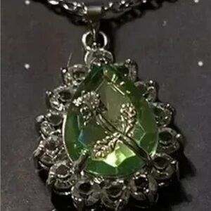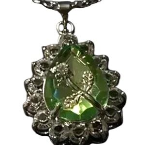 NWT SILVER NECKLACE WITH GREEN STONE WITH A FLOWER IN THE CENTER