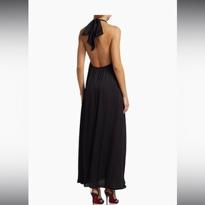 NWT SIMKHAI Ayra Halter Neck Ruched Black Maxi Dress