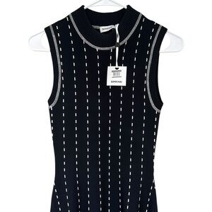 NWT SIMKHAI Cosette Contrast Stitch Sleeveless Sweater Dress- Navy Blue -Size XS