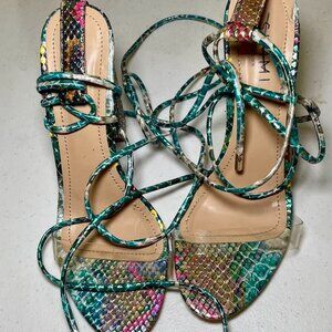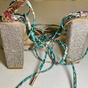 NWT SIMMI London Floral Snake Print Lace-Up Heels - Size 10