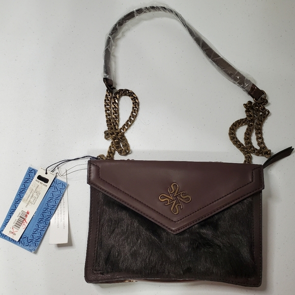 NWT SIMPLY VERA WANG Dark BROWN Faux Fur CROSSBODY BAG