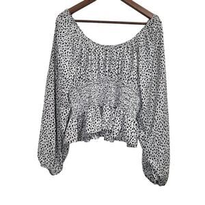 NWT SINCERELY JULES Animal Print Long Sleeve Smocked Crop Top Size Large