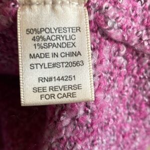 This vibrant pink cowl neck sweater from Sincerely Jules has a plush boucle texture and relaxed fit.