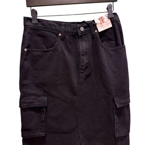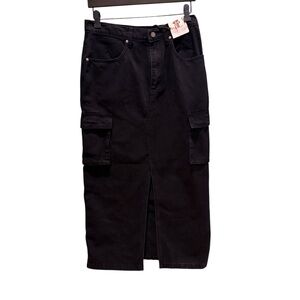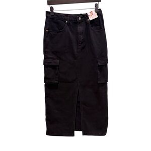 NWT SINCERELY JULES black denim midi cargo skirt slit in front Size 11/29