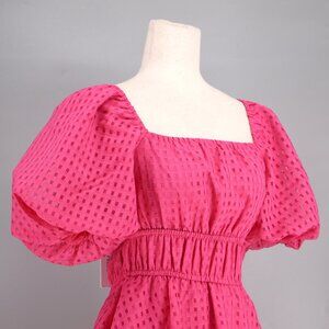NWT SINCERELY OURS Eyelet Bubble Sleeve Mini Dress Fuchsia Hot Pink Size XS