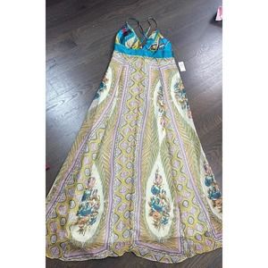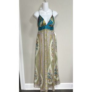 NWT~ SINGLE Brand 100%Silk Exotic Print Maxi Long Dress ~ S