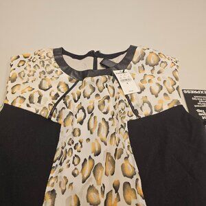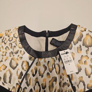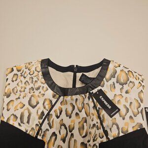 NWT [SIZE 6] Express Leopard Colorblock Faux Leather Trim Sheath Dress
