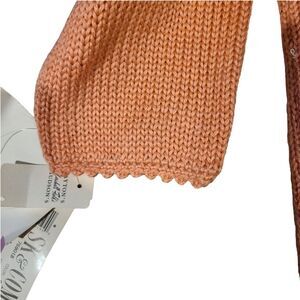Acrylic/Wool silver beaded chunky coral, cream, and grey striped textural oversized sweater. Full sleeves, longer sweater. Scalloped finish on collar, sleeves, and hem. Thin shoulder pads. New with tags-old school Marshall Fields tags still attached.