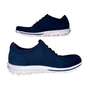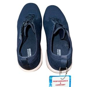 Incredible comfort from SKECHERS in these Go Walk slip-ins with laces. Deep navy blue colorway. Brand new with tags. Size 7M.
