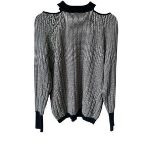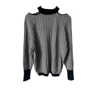 NWT SKFK Euba Black White Textured Shoulder Cut Out Sweater Size 6 Reg. $109