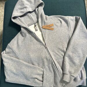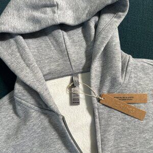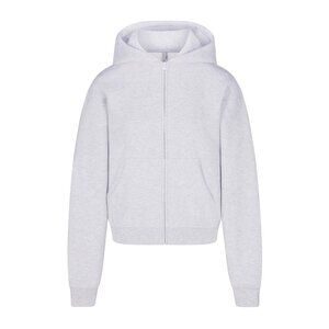 NWT SKIMS Cotton Fleece Classic Zip Up Hoodie Sweatshirt Light Heather Grey