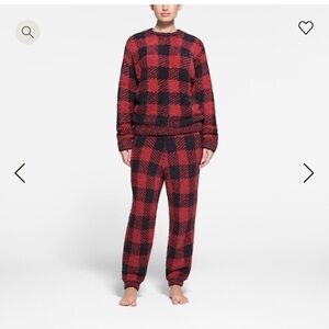 NWT SKIMS Cozy Knit Unisex Lounge Set - Brick Buffalo Check Oversized SET S/M