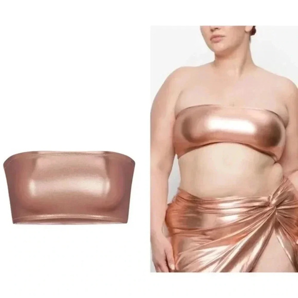 NWT SKIMS Limited Edition Metallic Gold Bandeau Bikini Top 4X Kim Kardashian