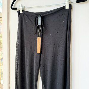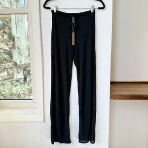 NWT SKIMS Mesh Rhinestone Swim Cover Up Pants Wide Leg Drawstring Black Small