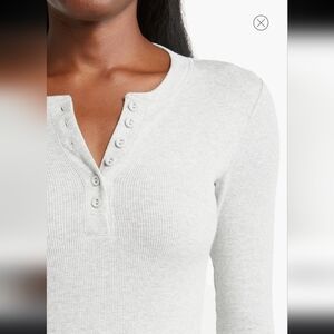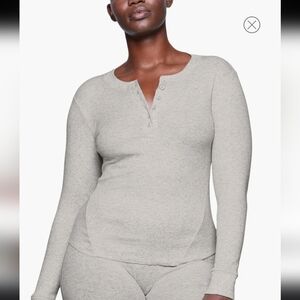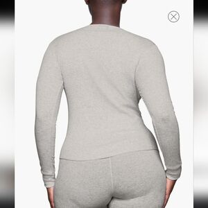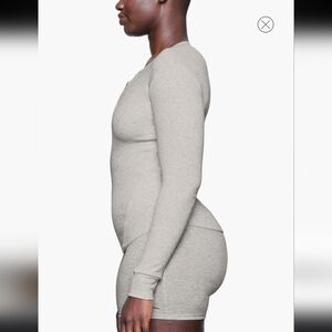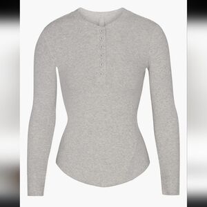 NWT SKIMS RIBBED STRETCH COTTON HENLEY TOP IN LIGHT HEATHER GREY SIZE XXS