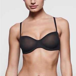 NWT SKIMS Ultra Fine Mesh Underwire Bra In Onyx Black Size 32H BR-UWR-2209