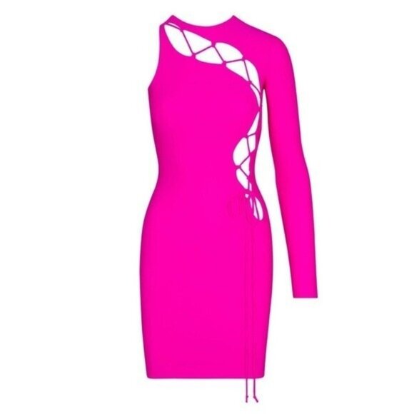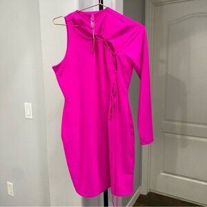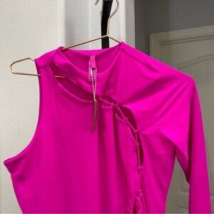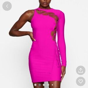 NWT SKIMS lace up mini dress in fuscia Size XL Bright Pink Stretch •