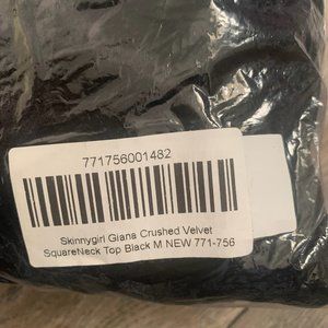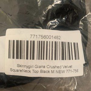 NWT (NEW IN BAG) SKINNYGIRL GIANA CRUSHED VELVET SQUARE NECK TOP COLOR BLACK SIZES MEDIUM & 1X.