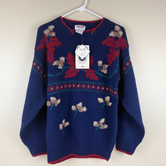 SKYR Sportswear 100% Shetland Wool Floral Fair Isle Sweater NWT – Navy/Red – Size 38