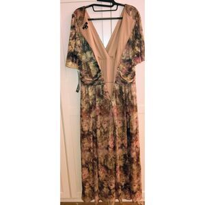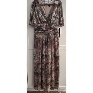 NWT SL Fashions Floral Metallic Faux Wrap Maxi Dress