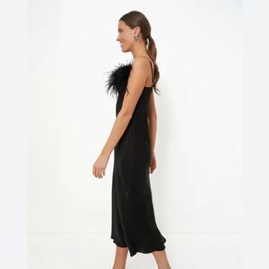 NWT SLEEPER Boheme Feather-trimmed Slip Dress in Ecovero Black $350