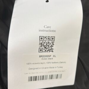 • Feather-trimmed neckline