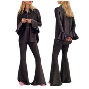 NWT SLEEPER Cosmos Black Sparkle Flare Luxury Party Pajamas 2 Piece Set