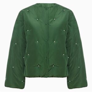 NWT SLEEPER Puffer Jacket in Green with Pearl Details Size L/XL NWT $450
