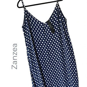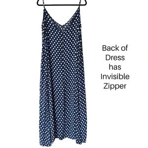 NWT | SLEEVELESS MAXI V-NECK SLIP DRESS NAVY BLUE WHITE POLKA DOT | SIZE: 14
