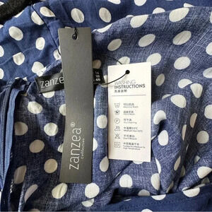A fun summer maxi dress, in a classic navy blue and white polka dot by ZANZEA | A loose and casual silhouette, the dress fabric is lightweight, soft and comfortable | Adjustable spaghetti straps, two side seam pockets and an invisible back zipper | Great as a summer dress or beach cover-up.