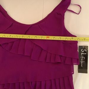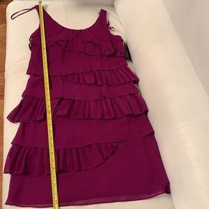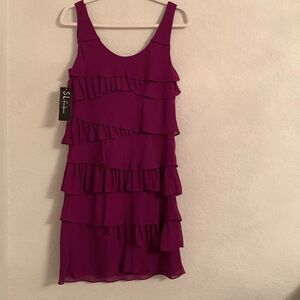 NWT S.L.Fashions Pleat Layer Tier Scoop Neck Neon Fuchsia Dress Size 6