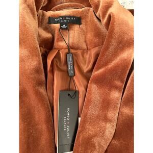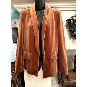 BRAND NEW VELVET SHAWL COLLARED JACKET . MEASUREMENTS IN PHOTOS. GREAT CUT! RUST COLOR. ORIGINALLY $175.