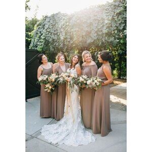 NWT SMYM Hacienda Maxi Dress XS Dune Chiffon Bridesmaid Convertible Formal