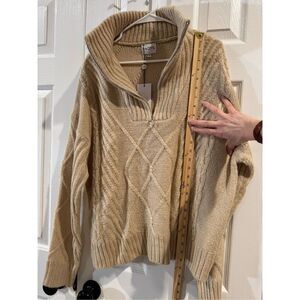 NWT SNDYS Jax Knit Cable Knit 1/4 Zip Up Cropped Cream Top Sweater Women’s L