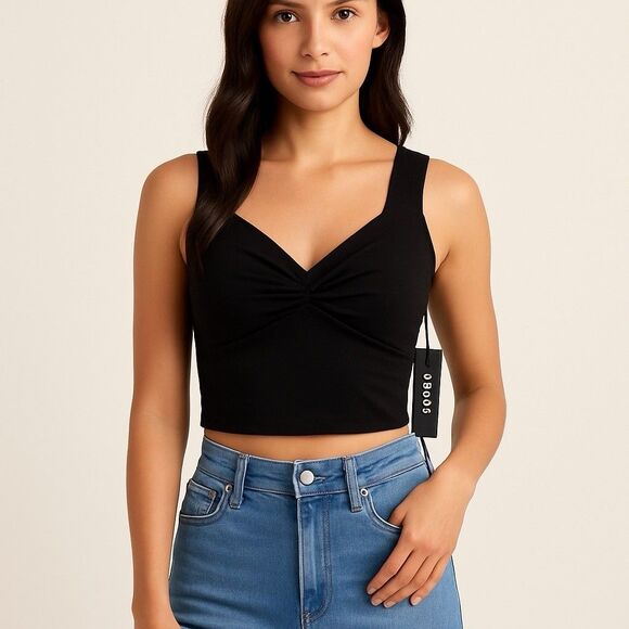 NWT- SNST Black Wide V-neck Sleeveless Tie Front Crop Top
