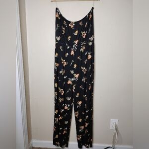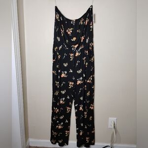 NWT SO Black Floral Jumpsuit XXL Strapless Tube Top Wide Leg Summer Resort