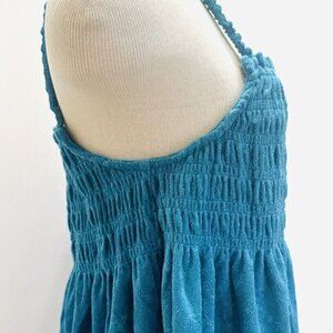 NWT SO Juniors Pullover Shirred Turquoise Terry Cloth Smocked Peplum Tank
