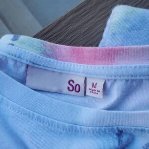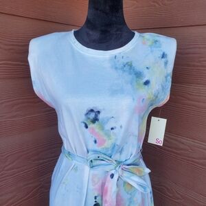 NWT SO Juniors' Shoulder Pad Dress with Self Tie Belt Tie Dye Size Medium 7/9