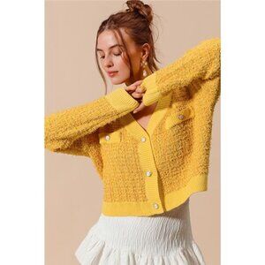 *The Frayed Tweed Knit Buttoned Front Cardigan is a sophisticated and stylish addition to your wardrobe. The frayed tweed knit fabric adds texture and interest to the cardigan. The buttoned front design offers versatility in styling and can be worn open or closed. Perfect for layering over tops or dresses, this cardigan is a chic and cozy option for cooler days. Pair it with jeans and boots for a classic and polished look!
