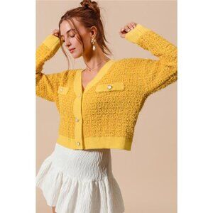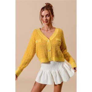 ✨NWT SO ME Frayed Tweed Knit Buttoned Front Cardigan