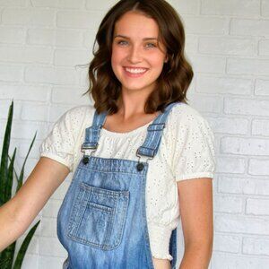 Such a cute top with a modern Cottagecore vibe from SO featuring an off-white eyelet, cropped length, an elasticized band and elastic at the neckline and sleeves.