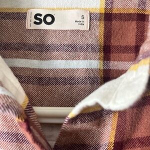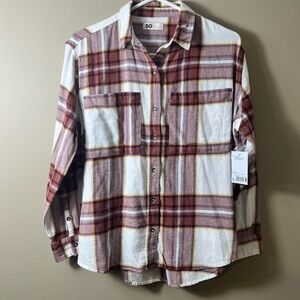 NWT SO Oversized Cotton Casual Comfy Button Down Plaid Shirt Size Small Rust
