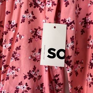 NWT SO Pink Floral Tie Front Blouse Girls Size 14-16